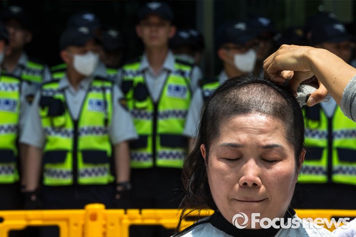 (서울=포커스뉴스)27일 오전 서울 중구 서울시청 앞에서 전국 장애인 부모연대와 서울특수학교학부모협의회 회원들이 발달장애인 정책 수립을 촉구하며 삭발식을 하고 있다.