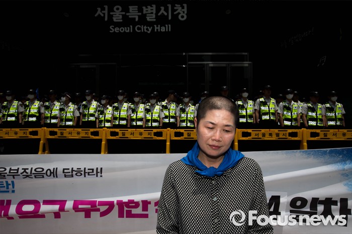 (서울=포커스뉴스)27일 오전 서울 중구 서울시청 앞에서 전국 장애인 부모연대와 서울특수학교학부모협의회 회원들이 발달장애인 정책 수립을 촉구하며 삭발식을 하고 있다.
