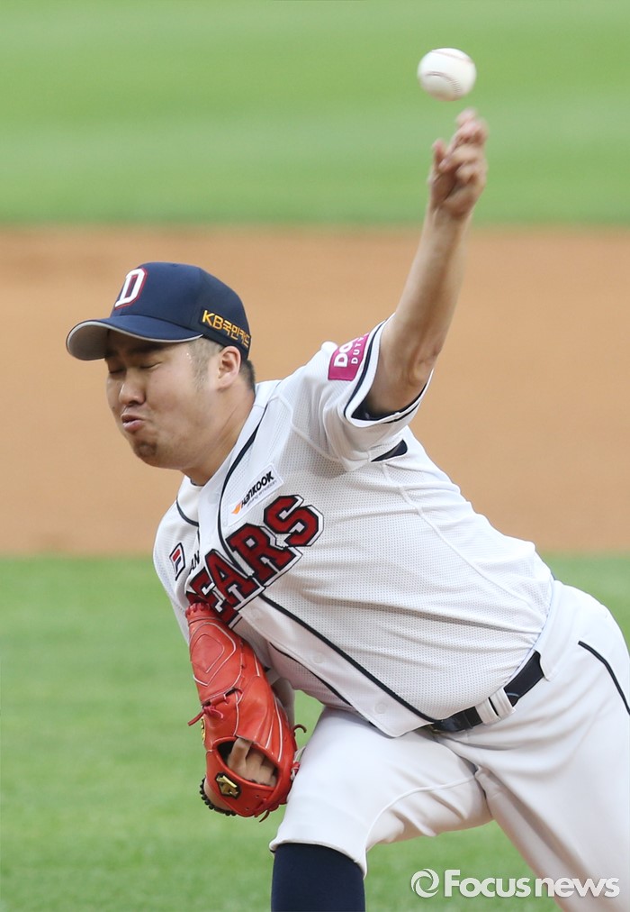 (서울=포커스뉴스) 27일 서울 잠실구장에서 열린 2016프로야구 LG-두산 경기에서 1회초 두산 선발투수 유희관이 투구하고 있다.