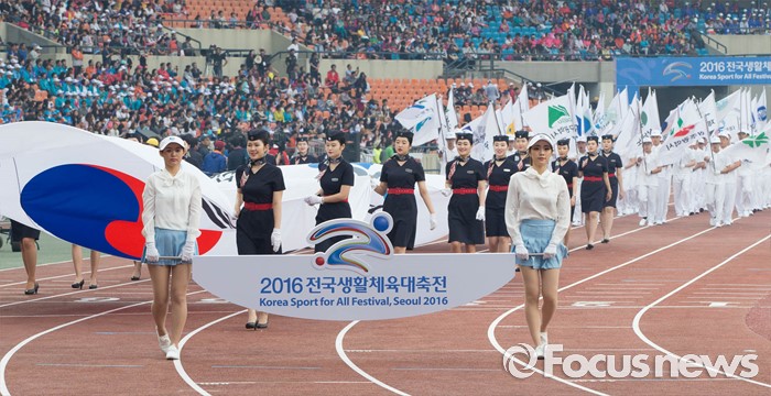 (서울=포커스뉴스) 2016 전국생활체육대축전 개막식이 열린 27일 오후 서울 송파구 잠실 올림픽주경기장에서 개막 축하 퍼레이드가 진행되고 있다.
