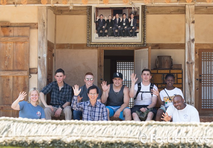 (음성=포커스뉴스) 반기문 UN사무총장이 김종필 전 국무총리를 예방한 28일 오후 충북 음성군 원남면 반기문 생가를 찾은 주한미군들이 기념촬영 하고 있다.