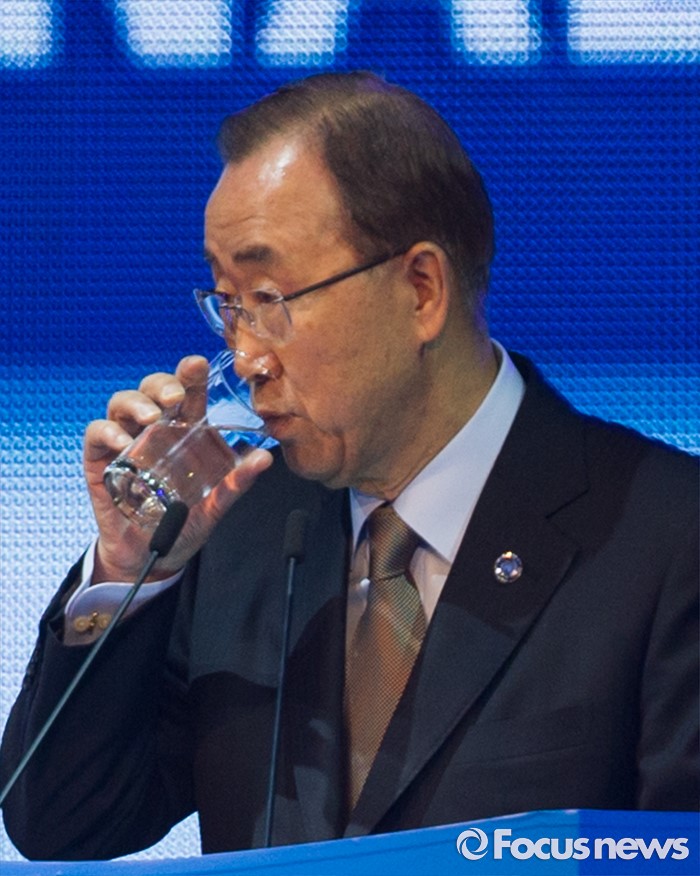 (서울=포커스뉴스) 반기문 유엔 사무총장이 29일 오전 경기 고양시 킨텍스 제1전시장에서 열린 2016 국제로타리 세계대회에 참석해 물을 마시고 있다.