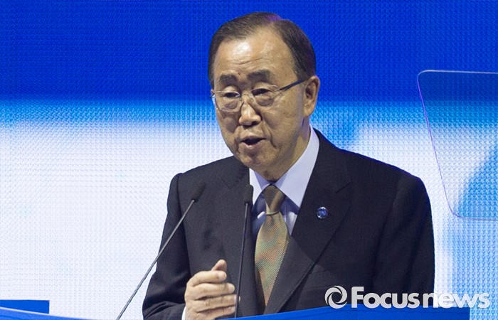 (서울=포커스뉴스) 반기문 유엔 사무총장이 29일 오전 경기 고양시 킨텍스 제1전시장에서 열린 2016 국제로타리 세계대회에 참석해 기조연설 하고 있다.