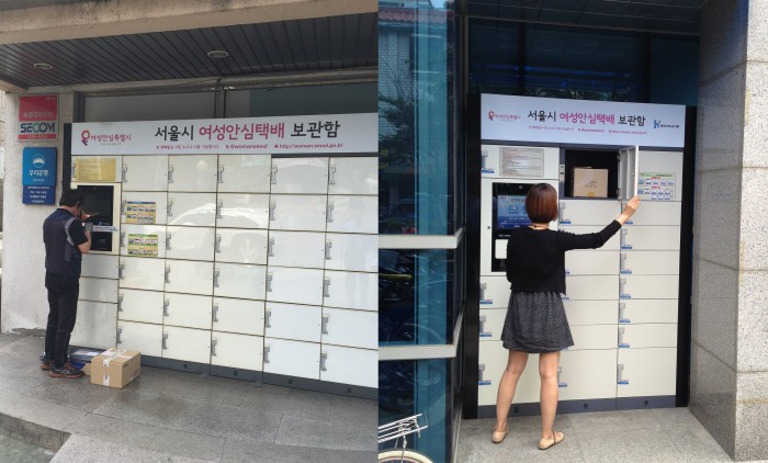 여성안심택배는 낯선 사람을 대면하지 않고 집 주변에 설치된 무인택배보관함을 통해 원하는 시간에 택배를 받을 수 있는 서비스이다.