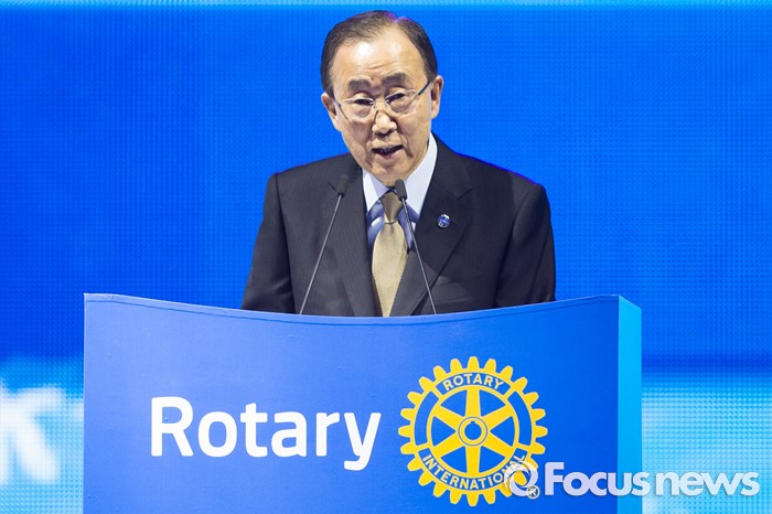 (서울=포커스뉴스) 반기문 유엔 사무총장이 29일 오전 경기 고양시 킨텍스 제1전시장에서 열린 2016 국제로타리 세계대회에 참석해 기조연설 하고 있다.