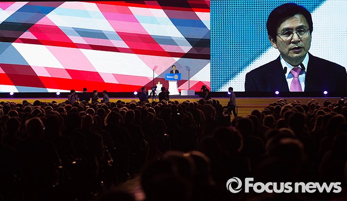 (서울=포커스뉴스) 황교안 국무총리가 29일 오전 경기 고양시 킨텍스 제1전시장에서 열린 2016 국제로타리 세계대회에 참석해 인사말을 하고 있다.