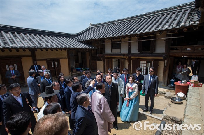 (안동=포커스뉴스) 반기문 UN 사무총장이 29일 오후 경북 안동시 하회마을 방문해 안동충효당을 둘러보고 있다.