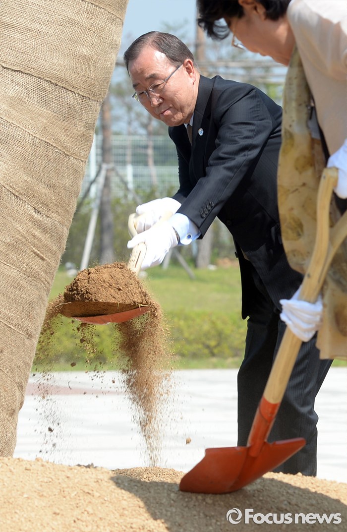 (안동=포커스뉴스) 반기문 유엔 사무총장 내외가 29일 오후 유네스코 세계문화유산으로 등재된 경북 안동 하회마을을 방문해 기념 식수를 하고 있다.