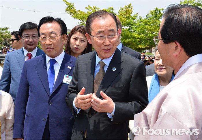 | △ 관계자들과 대화하는 반기문 유엔 사무총장 |