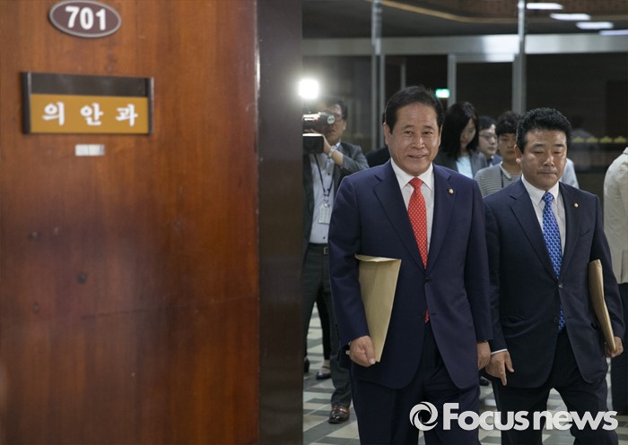 (서울=포커스뉴스) 20대 국회 임기가 시작된 30일 오전 서울 여의도 국회 의안과에서 배덕광 새누리당 의원(2호 법안), 박정 더불어민주당 의원(1호 법안)이 각각 법안 서류를 제출하고 있다.