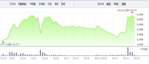 계약 해지금액은 약 543억원이고 해지 사유는 계약상대방의 해당사업(신사업 에너지) 부진에 의한 계약해지 요청이다.주가흐름<사진출처=네이버 캡쳐>