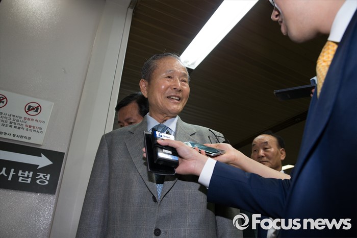 (서울=포커스뉴스) 포스코 비리에 연루된 혐의를 받고 있는 이상득 전 의원이 1차 공판에 출석하기 위해 30일 오전 서울 서초구 서울중앙지방법원으로 들어서고 있다.