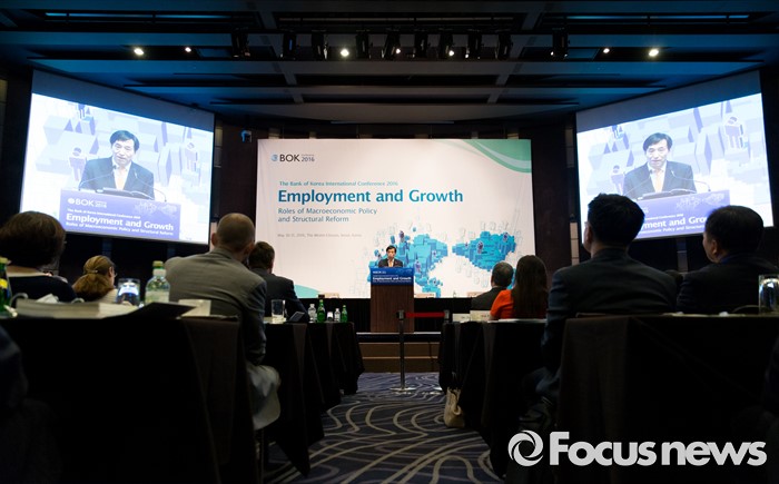 (서울=포커스뉴스) 30일 오전 서울 중구 웨스틴조선호텔에서 열린 2016 한국은행 국제컨퍼런스에서 이주열 한국은행 총재가 개회사를 하고 있다.