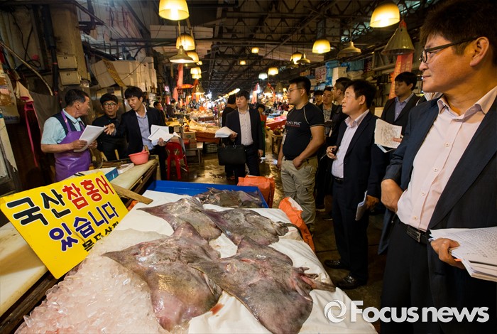 (서울=포커스뉴스) 30일 오전 서울 동작구 구 노량진수산시장에서 서울중앙지법 관계자들이 법원의 점유이전금지가처분을 집행하고 있다. 법원은 이날 영업은 지속하되 수협의 동의없이 가게를 타인에게 이전·전대하면 안된다고 상인들에게 통보 했다.