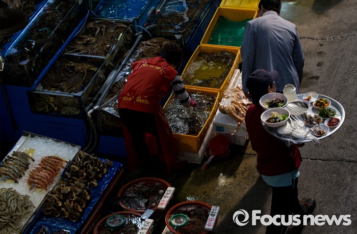 (서울=포커스뉴스) 30일 오전 서울 동작구 구 노량진수산시장에서 서울중앙지법 관계자들이 법원의 점유이전금지가처분을 집행한 가운데 상인들이 영업을 이어가고 있다. 법원은 이날 영업은 지속하되 수협의 동의없이 가게를 타인에게 이전·전대하면 안된다고 상인들에게 통보 했다.