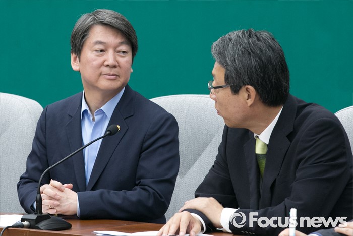 (서울=포커스뉴스) 20대 국회 임기가 시작된 30일 오전 서울 여의도 국회에서 열린 국민의당 의원총회에 참석한 안철수(왼쪽) 상임공동대표와 김성식 정책위의장이 대화하고 있다.