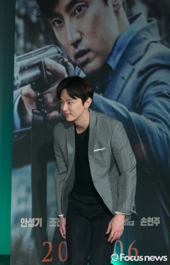 (서울=포커스뉴스) 30일 오전 서울 광진구 건대입구 롯데시네마에서 열린 영화 '사냥' 제작보고회에 참석한 배우 권율이 취재진에게 질문을 하고 있다.