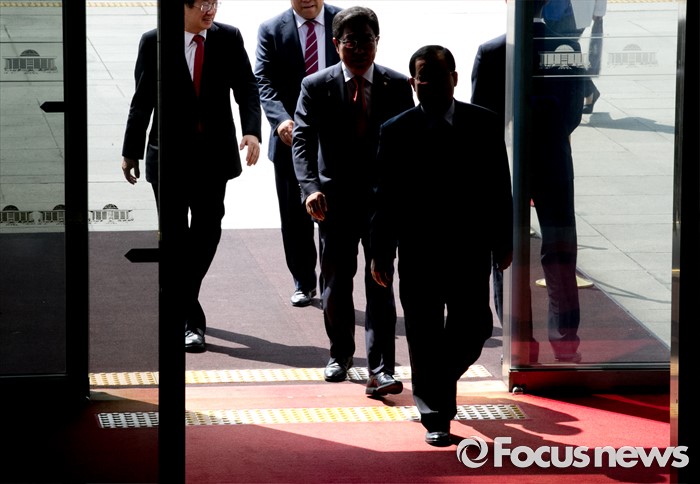 (서울=포커스뉴스) 20대 국회 임기가 시작된 30일 오전 서울 여의도 국회에서 의원들이 각 당 의원총회에 참석하기 위해 본청으로 들어서고 있다.
