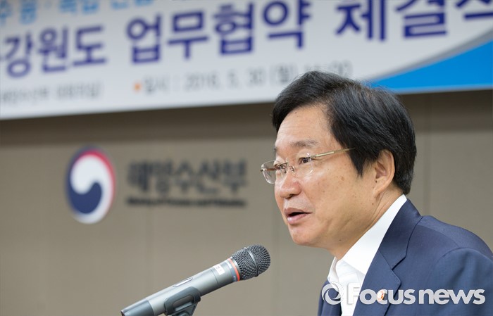(세종=포커스뉴스) 30일 오전 세종시 정부세종청사 해양수산부 대회의실에서 열린 해양심층수 융·복합 산업 육성을 위한 해양수산부와 강원도 간 업무협약 체결식에서 김영석 해양수산부 장관이 인사말을 하고 있다.