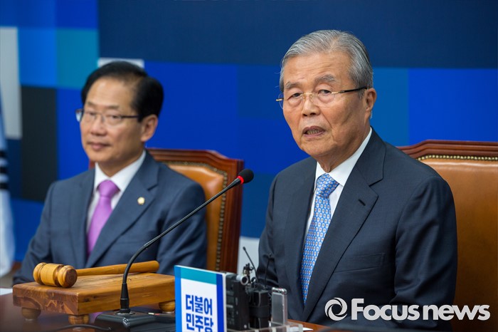 (서울=포커스뉴스) 김종인(오른쪽) 더불어민주당 비상대책위 대표가 30일 오후 서울 여의도 국회에서 열린 '전당대회준비위원회 1차 회의'에 참석해 모두발언 하고 있다.
