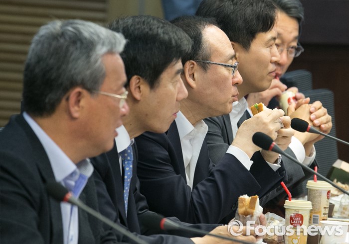 (서울=포커스뉴스) 31일 오전 서울 여의도 국회 의원회관에서 열린 국민의당 8차 정책역량강화 워크숍에 참석한 의원들이 샌드위치 등을 먹고 있다.