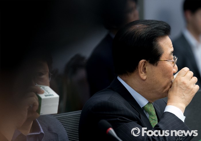 (서울=포커스뉴스) 31일 오전 서울 여의도 국회 의원회관에서 열린 국민의당 8차 정책역량강화 워크숍에 참석한 박준영 의원이 음료를 마시고 있다.