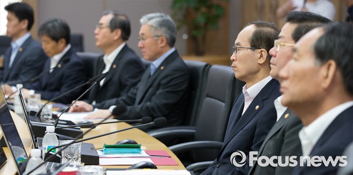 (세종=포커스뉴스) 31일 오전 세종시 정부세종청사 국무회의장에서 서울-세종 영상회의로 열린 국무회의에 참석한 국무위원들이 황교안 국무총리의 발언을 경청하고 있다.