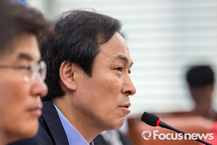 (서울=포커스뉴스) 우상호 더불어민주당 원내대표가 31일 오전 서울 여의도 국회에서 열린 원내대책회의에 참석해 모두발언 하고 있다.