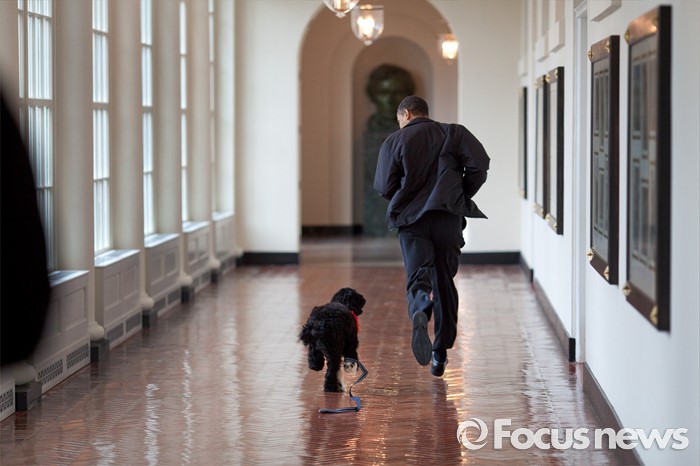 (서울=포커스뉴스) 2008년 3월 백악관 이스트 콜로네이드에서 오바마 대통령이 자신의 반려견 '보'와 함께 뛰고 있다. <사진출처=백악관 공식홈페이지 갈무리>