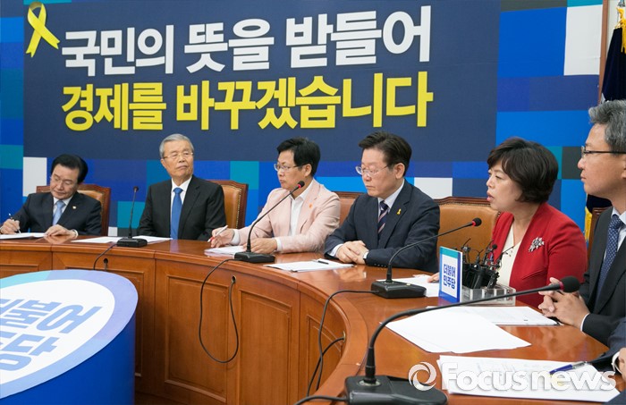 (서울=포커스뉴스) 새누리당 소속인 신계용(오른쪽 두번째) 과천시장이 31일 오전 서울 여의도 국회에서 열린 지방재정 개편 관련 김종인 더불어민주당 비대위 대표 등 지도부와의 면담에 참석해 발언하고 있다.