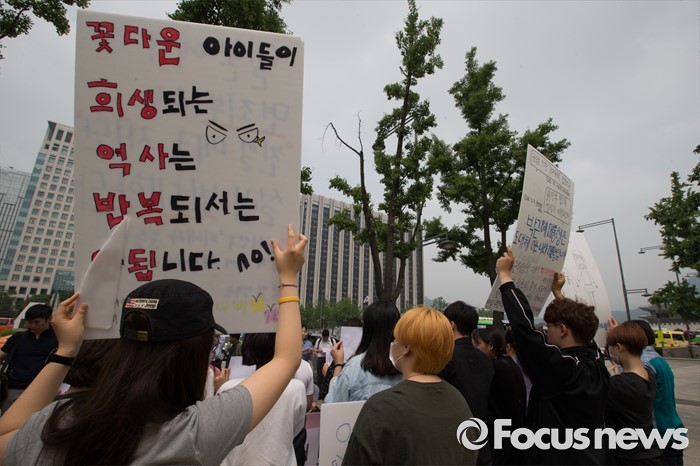 (서울=포커스뉴스) 한일 일본군위안부 합의 무효를 위한 대학생 대책위원회 학생들이 31일 오전 서울 종로구 대한민국역사박물관 앞에서 일본군위안부 피해자 의견 배제한 재단설립 강행 규탄 기자회견을 열고 있다.