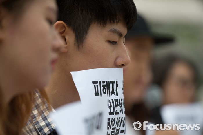 (서울=포커스뉴스) 한일 일본군위안부 합의 무효를 위한 대학생 대책위원회 학생들이 31일 오전 서울 종로구 대한민국역사박물관 앞에서 일본군위안부 피해자 의견 배제한 재단설립 강행 규탄 기자회견을 열고 있다.