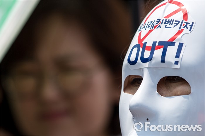 (서울=포커스뉴스) 31일 오후 서울 여의도 국회 앞에서 경제정의실천시민연합 관계자들이 옥시 제품 불매 및 옥시 예방법 제정을 촉구하는 기자회견을 하고 있다.