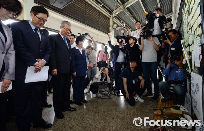 | △ 구의역 사건장소 찾은 더불어민주당 |