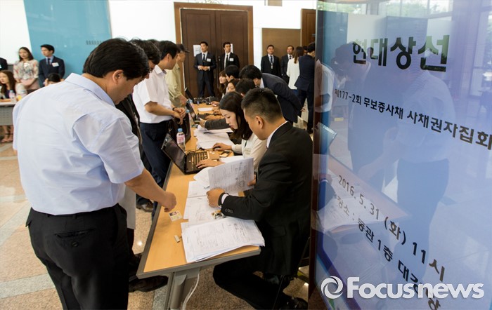 이날 열린 사채권자 소집회의는 177-2(2400억원)·179-2(600억원)·180(3300억원)회차 무보증사채권자를 대상으로 열린 채무조정 회의다. 현대상선은 모두 채무조정안으로 △미상환 사채의 50% 이상 출자 전환 △남은 채무는 2년 간 연 1% 이자로 거치 △3년에 걸쳐 분할상환을 내세웠다.