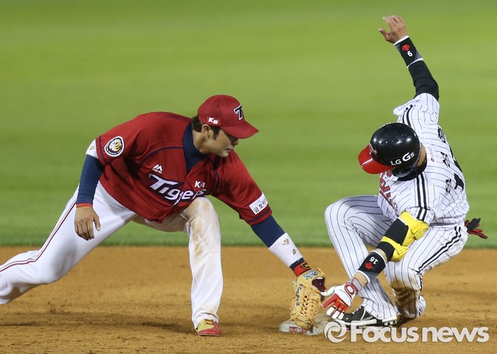 (서울=포커스뉴스) 31일 서울 잠실구장에서 열린 2016 프로야구 KIA-LG 경기 4회말 2사 3루에서 LG 정성훈의 좌익선상으로 빠지는 2루타를 치고 2루에서 세이프되고 있다.