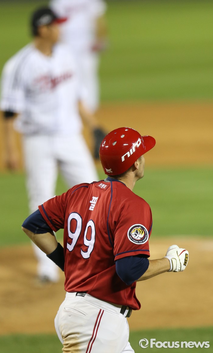 (서울=포커스뉴스) 31일 서울 잠실구장에서 열린 2016 프로야구 KIA-LG 경기 6회초 2사 만루에서 KIA 필이 역전 밀어내기 볼넷으로 진루하고 있다.