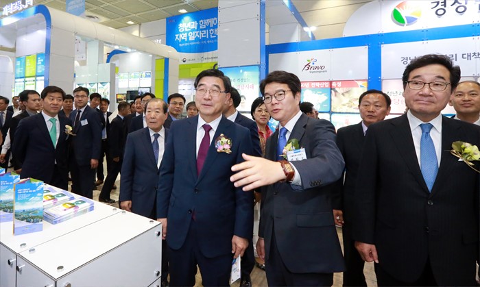 (서울=포커스뉴스) 이기권 고용노동부장관이 31일 오후 서울 COEX(3층 C홀)에서 개최된 청년과 함께하는 지역일자리 한마당에 참석해 부스를 관람하고 있다. <사진제공=고용노동부>