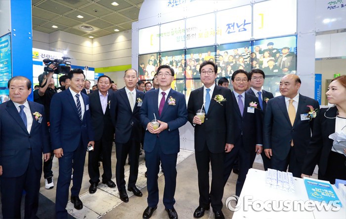 (서울=포커스뉴스) 이기권 고용노동부장관이 31일 오후 서울 COEX(3층 C홀)에서 개최된 청년과 함께하는 지역일자리 한마당에 참석해 부스를 관람하고 있다. <사진제공=고용노동부>