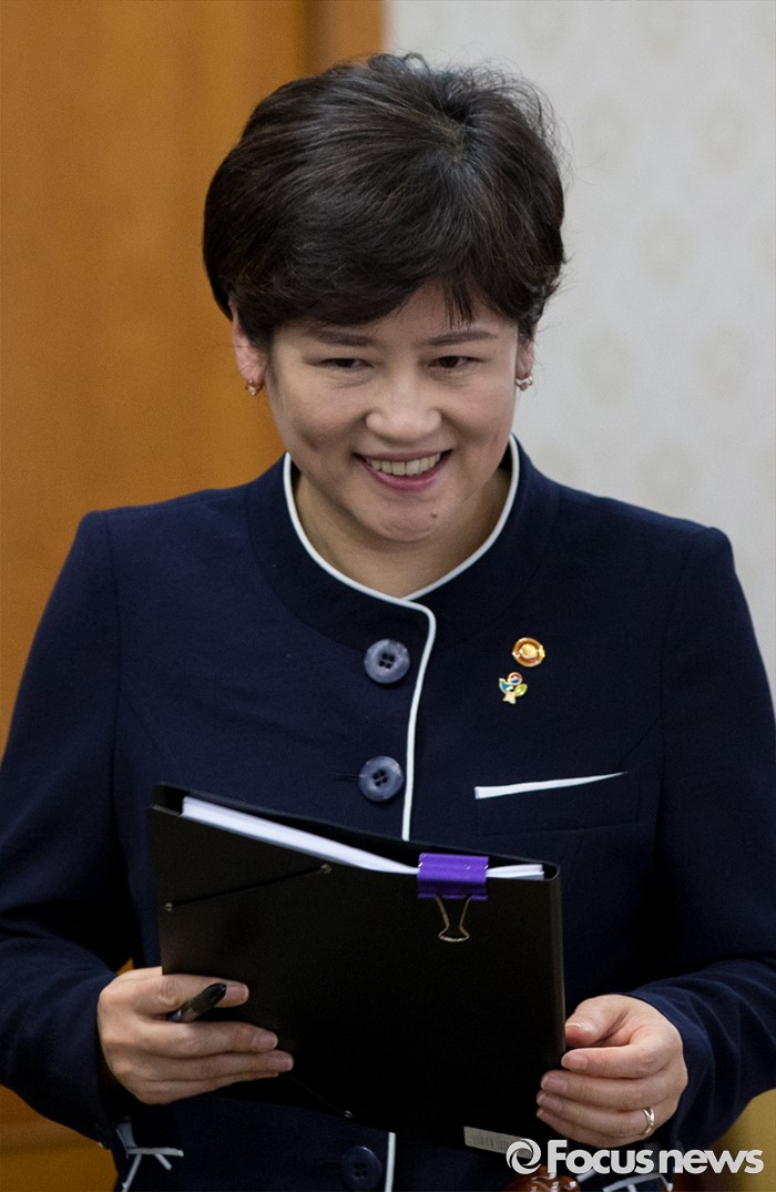 (서울=포커스뉴스) 1일 오전 서울 종로구 정부서울청사에서 열린 법질서관계장관회의에 강은희 여상가족부 장관이 참석하고 있다.