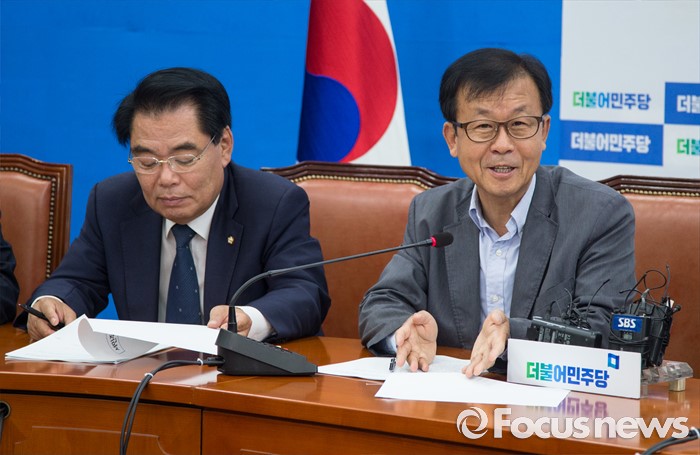 (서울=포커스뉴스) 원혜영(오른쪽) 더불어민주당 의원이 1일 오전 서울 여의도 국회 원내대표실에서 열린 서민주거TF 발족식에서 인사말을 하고 있다.