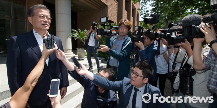 (청주=포커스뉴스) 문재인 더불어민주당 전 대표가 1일 오전 충북 청주 청원구 천주교 청주교구를 방문, 장봉훈 주교와 면담을 마치고 청주교구를 나서며 취재진의 질문에 답변하고 있다.