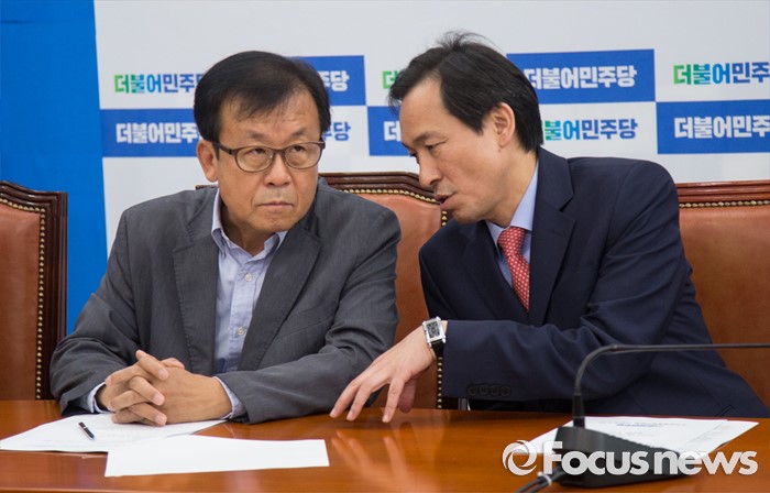 (서울=포커스뉴스) 우상호(오른쪽) 더불어민주당 원내대표가 1일 오전 서울 여의도 국회 원내대표실에서 열린 서민주거TF 발족식에서 원혜영 의원과 대화하고 있다.