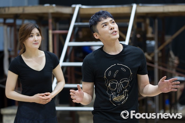 (서울=포커스뉴스) 가수 휘성이 1일 오후 서울 종로구 아리온 연습실에서 열린 뮤지컬 '올슉업' 연습공개 현장에서 연기를 선보이고 있다.