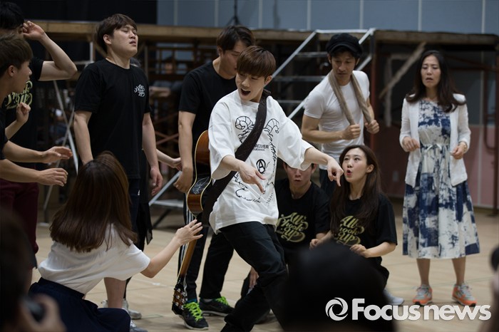 (서울=포커스뉴스) 인피니트 성규가 1일 오후 서울 종로구 아리온 연습실에서 열린 뮤지컬 '올슉업' 연습공개 현장에서 연기를 선보이고 있다.