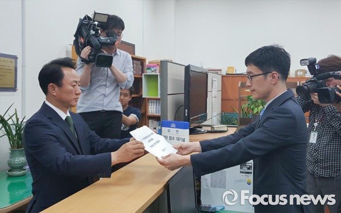 박 원내대표는 "이번 5·18특별법 개정안 발의에 국민의당 소속의원 38명 전원이 참여했다"며 "향후 '당론법안'으로 지정해 다른 야당과 공조해 조속히 통과시킬 예정"이라고 말했다.(서울=포커스뉴스) 김명진 국민의당 원내대표 비서실장이 1일 오후 서울 여의도 국회 의안과에서 임을 위한 행진곡 5·18 기념곡 지정 등의 내용이 포함된 박지원 의원 대표발의 '5·18 민주화운동 등에 관한 특별법 일부개정법률안'을 제출하고 있다 2016.06.01 최선환 기자