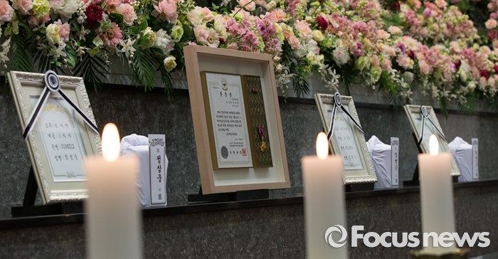 (대전=포커스뉴스) 2일 오전 대전 유성구 국립대전현충원에서 6.25 전쟁 전사자 발굴유해 3위(位) 합동안장식이 거행되고 있다.