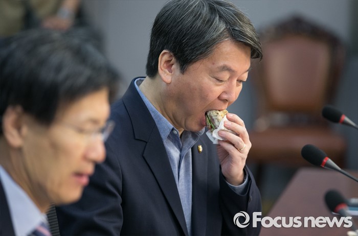 (서울=포커스뉴스) 2일 오전 서울 여의도 국회 의원회관에서 열린 국민의당 정책역량강화 집중 워크숍에 참석한 안철수(오른쪽) 상임공동대표가 샌드위치를 먹고 있다.