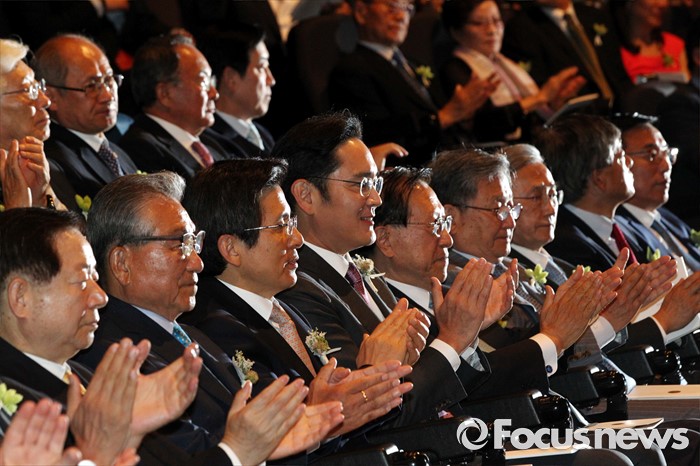 (서울=포커스뉴스) 1일 오후 서울 중구 호암아트홀에서 열린 제26회 호암상 시상식에 참석한 황교안(앞줄 왼쪽 세번째부터) 국무총리와 이재용 삼성전자 부회장이 박수치고 있다.