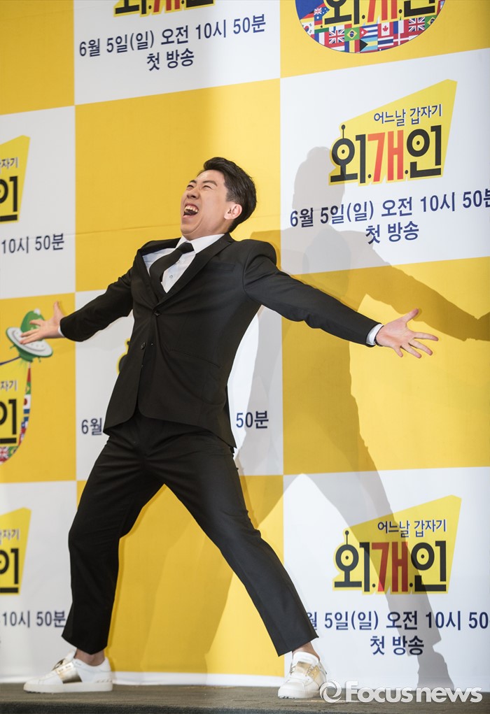 (서울=포커스뉴스) 2일 오전 서울 영등포구 KBS신관 웨딩홀에서 열린 KBS새 예능 프로그램 '어느날 갑자기 외.개.인' 제작발표회에 참석한 개그맨 양세찬이 포토타임을 갖고 있다.